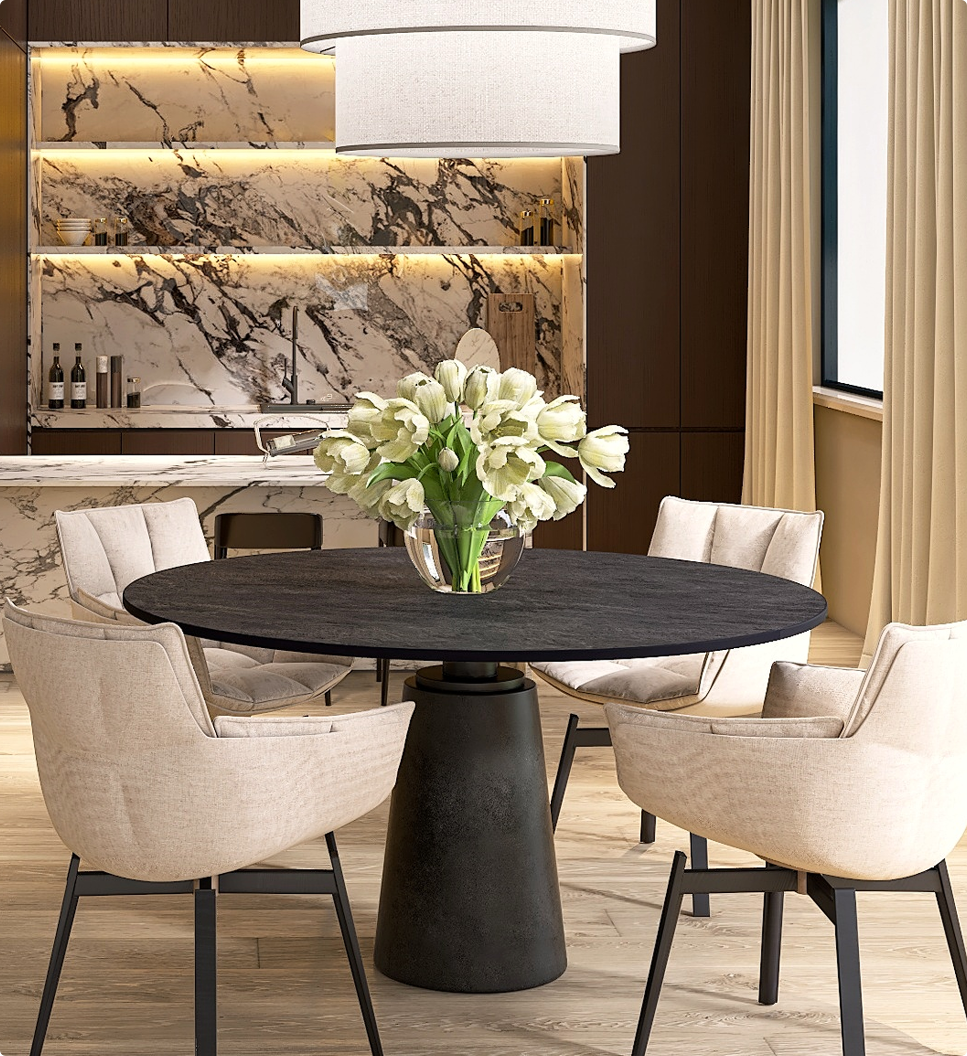 Ich arbeite konzeptionell mit Blick für Proportion, Materialität und Atmosphäre. Meine Entwürfe verbinden Raumstruktur mit zeitloser Eleganz, hochwertigen Materialien und präziser Lichtführung.